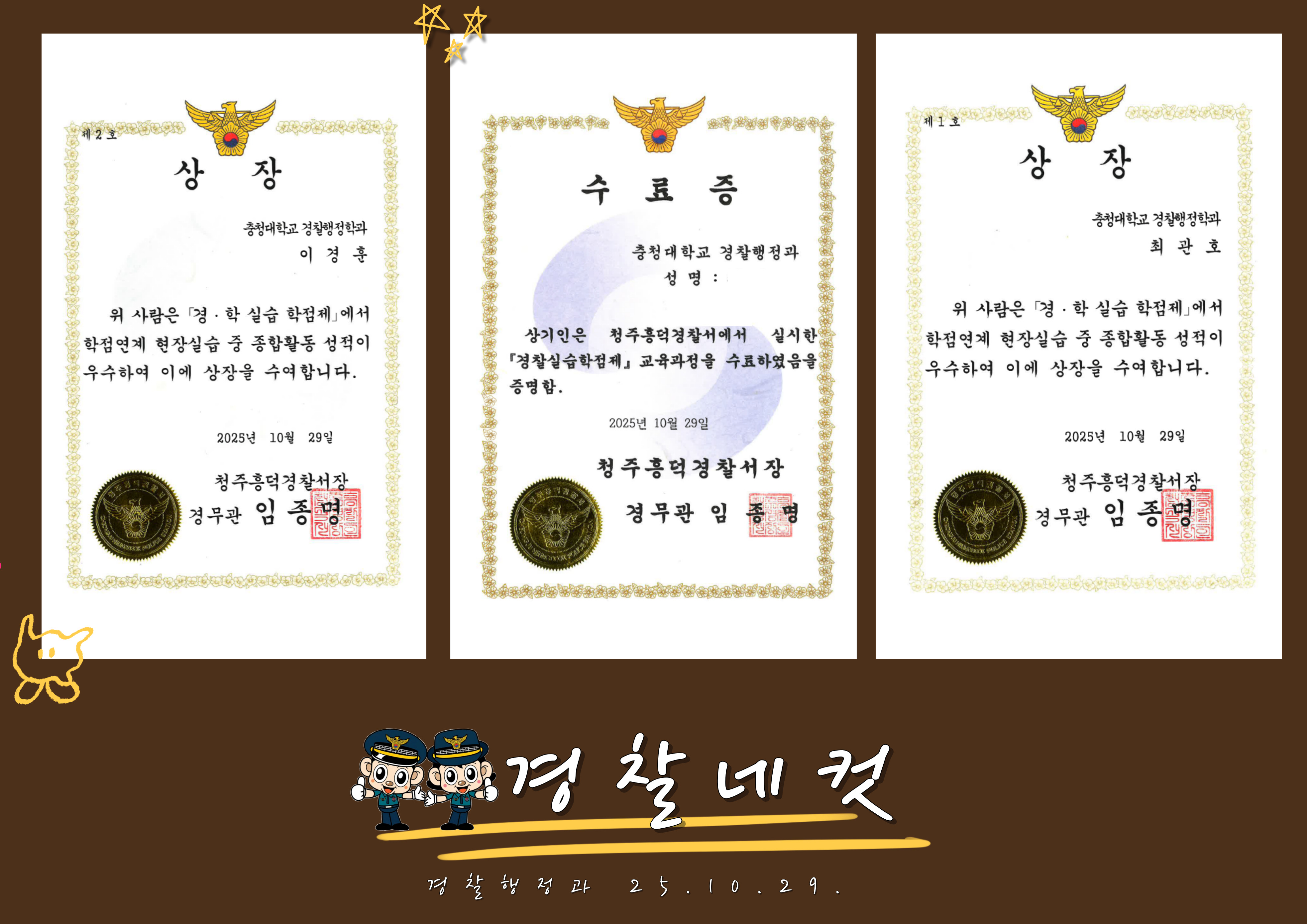 2025년 10월 29일 (수)에 청주 흥덕경찰서 수료식에 다녀왔습니다.