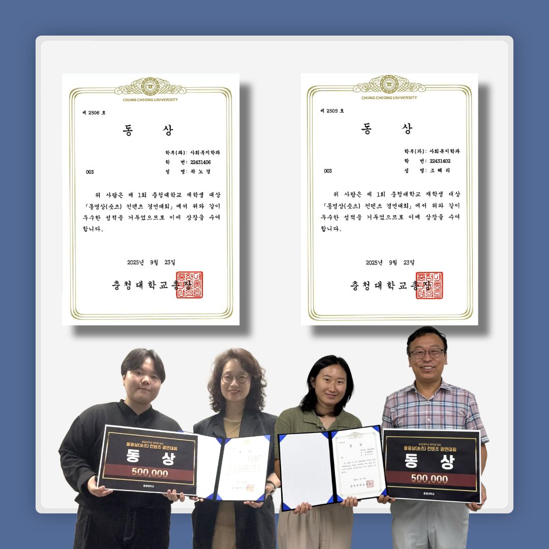| 충청대학교 동영상(숏츠) 콘텐츠 경연대회 - 동상(4학년 곽노경, 조혜리) | |
