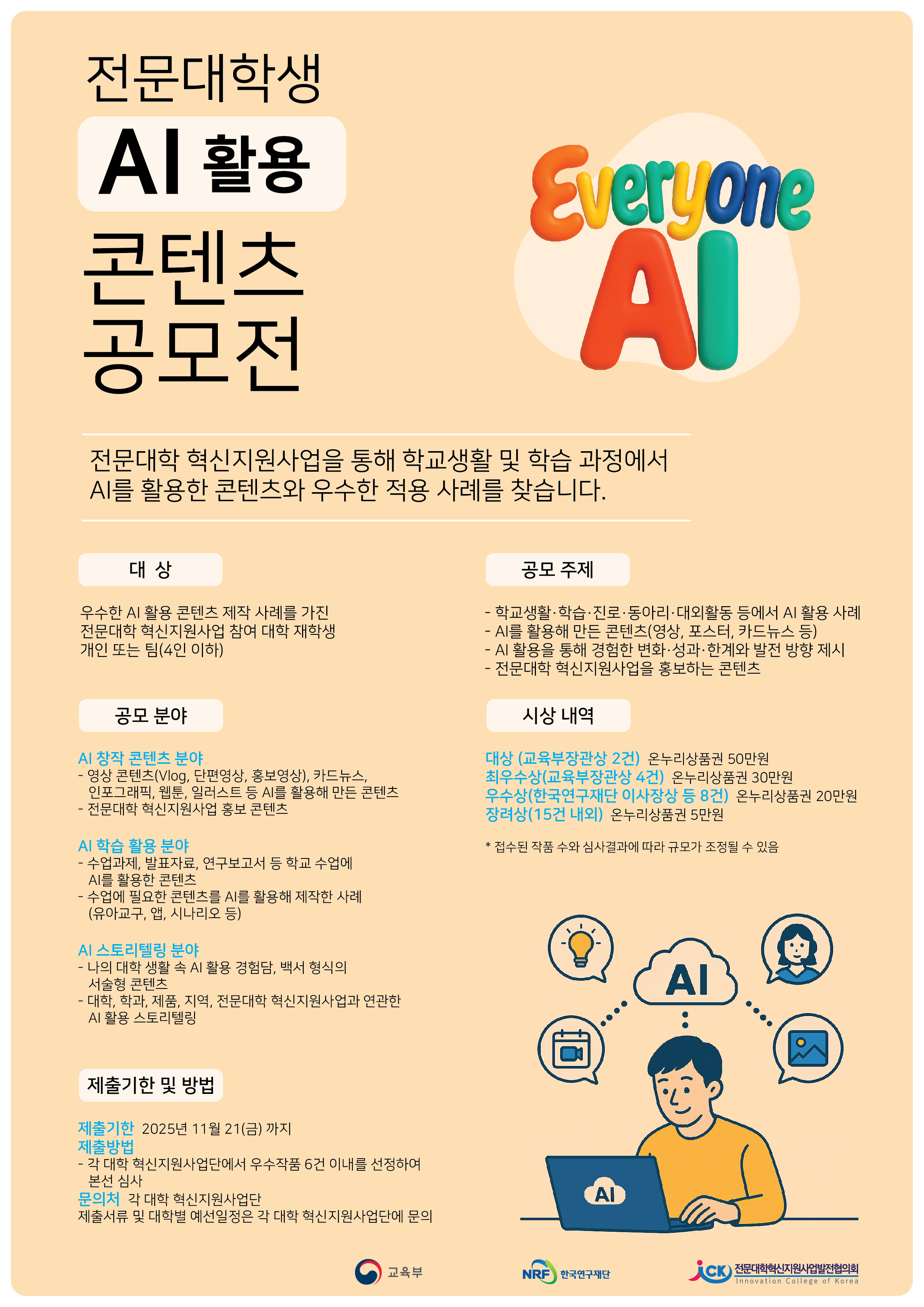 2025년 전문대학 혁신지원사업 AI 활용 콘텐츠 공모전 안내 | |